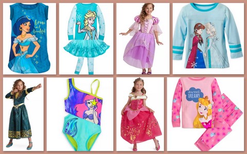 2. Одежда. Это могут быть и тематические костюмы – платья и наряды, которые носили принцессы в мультиках и фильмах; или же обычная, повседневная или праздничная одежда с тематическими рисунками, принтами с принцессами. А если поискать, то можно найти даже туфельки принцесс!