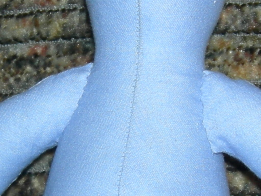 затем зашила ему пузо и пришила ноги (как пришивать ноги, в моём случае, неважно, так как штаны у Кролика сниматься не будут. Главное пришить их крепко!!!).