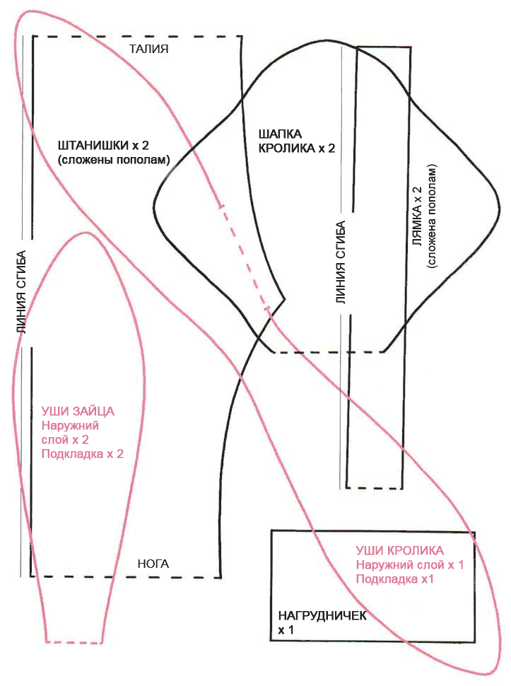 1. Выкройку Кролика я брала из инета. Просто распечатала каждый рисунок в 2-х экземплярах и вырезала.